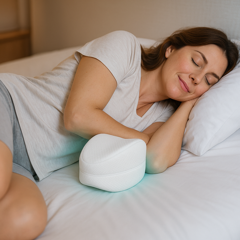 AURAline™ works by gently aligning your hips, knees, and spine to relieve pressure. Unlike basic pillows that just cushion the pain, AURAline™ corrects it while you sleep.