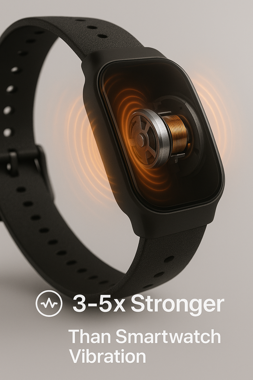 The vibration is 3–5× stronger than a smartwatch and is designed specifically for people who struggle with sleep inertia or deep-sleep stages. Instead of relying on your ears, it sends a direct signal to your nervous system — making it much harder to sleep through. Even users who “don’t feel anything in the morning” say this wakes them instantly.