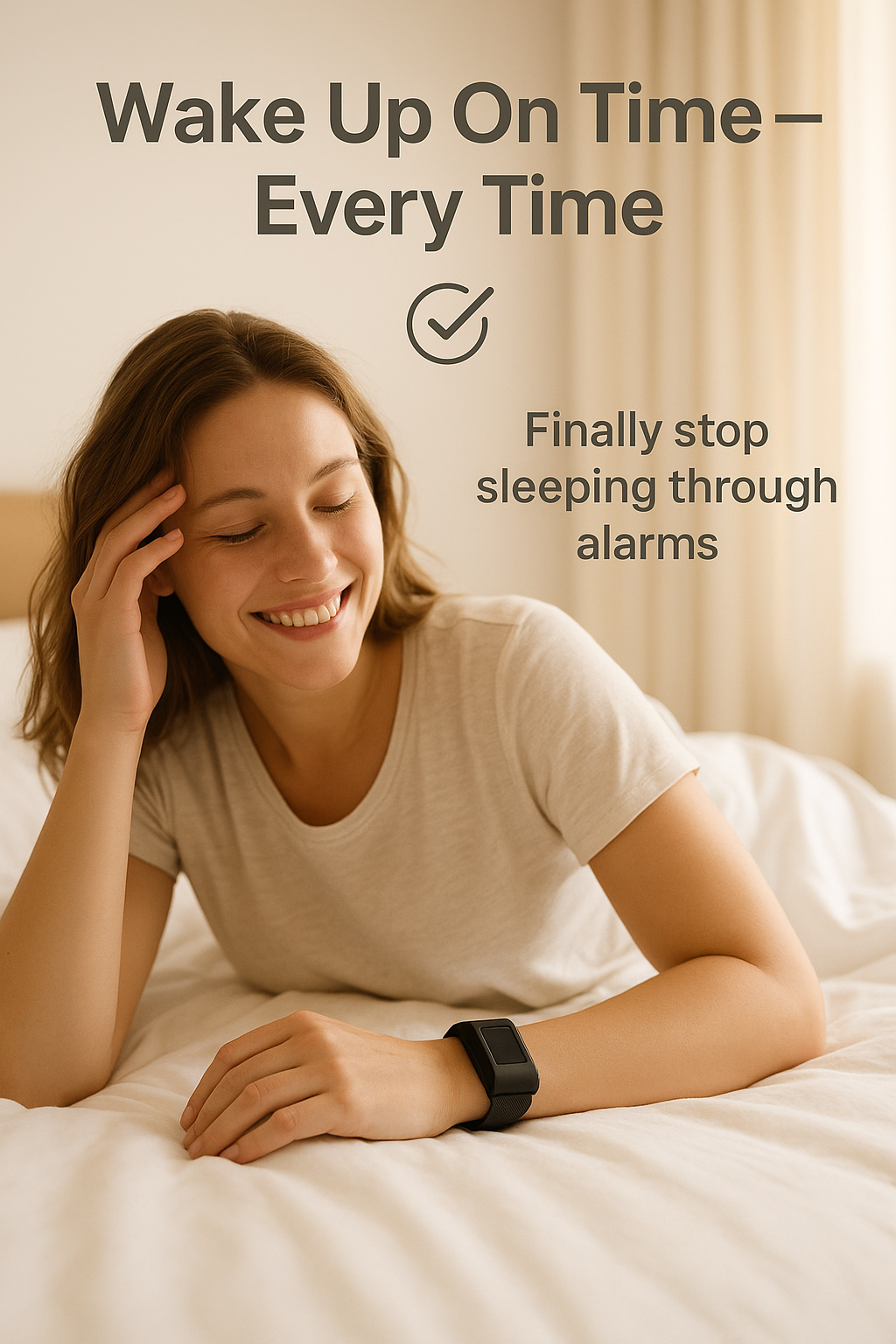If you’re tired of alarms failing you, it’s time to switch to a wake-up method engineered for people just like you. Our silent vibrating wristband gives you reliable, stress-free mornings — backed by a 60-day risk-free trial and a Wake-Up Guarantee, so you’ve got nothing to lose and your entire morning routine to gain.