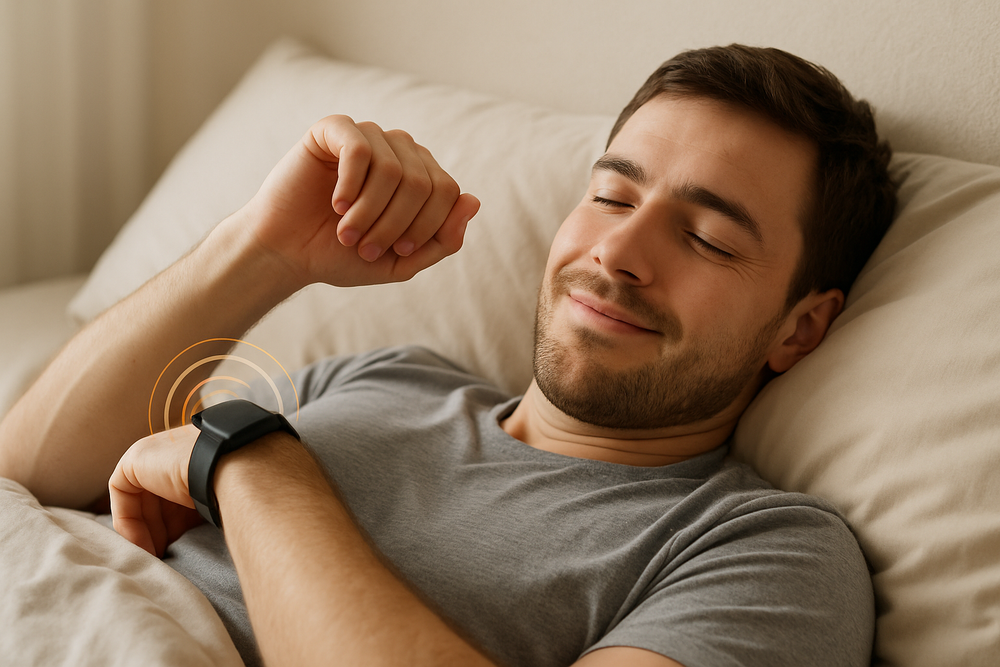 NueWake uses strong, targeted vibration on your wrist — not sound — so your body feels it even in deep sleep. Phones, smartwatches, and loud alarms fail because your brain can tune out noise, but it can’t ignore direct vibration. This is why heavy sleepers, ADHD sleepers, and people who sleep through 10+ alarms finally wake up with it.